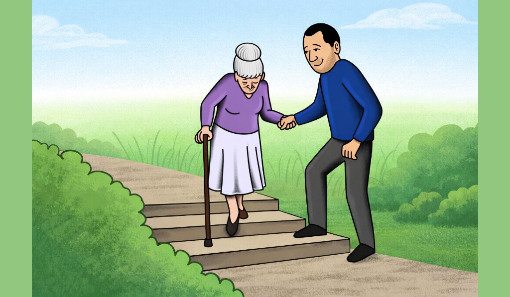 Sometimes the simplest actions leave the deepest impact. The image of a younger person gently helping an elderly woman walk