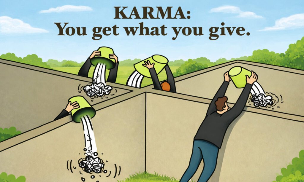 The phrase “Karma: You get what you give” is simple, yet deeply powerful. It reflects a universal principle that actions—both positive and
