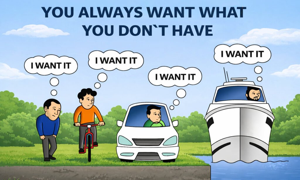 In today’s fast-moving world, one emotional pattern silently controls many of our decisions: wanting what we don’t have. The image perfectly illustrates